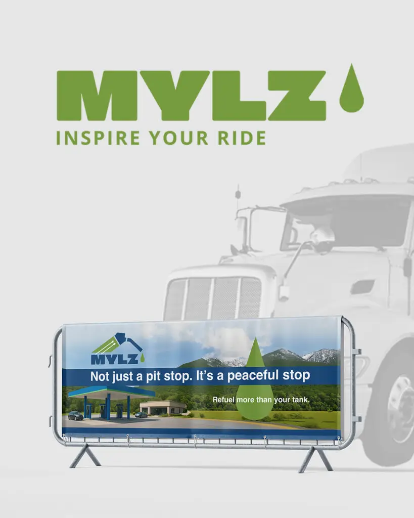 Designing the MYLZ logo started with one core idea: creating an identity that reflects a gas station built not just for fueling, but for pausing, breathing, and enjoying the journey. MYLZ isn’t a typical rest stop, it’s a place where movement meets comfort, where travelers can fill their tank, eat good food, and relax with a view of nature. I wanted the logo to capture that feeling. The name itself, MYLZ, carries the sense of distance and adventure, so I shaped the symbol to express motion while keeping it calm and grounded. Clean lines show a sense of direction, while open spacing hints at the natural environment that surrounds each location. The wordmark was designed to be bold and instantly recognizable on the road, with strong forms that communicate reliability and modernity. The color palette blends the energy of travel with the tranquility of a scenic rest. Every decision in the process aimed to translate MYLZ’s purpose into a visual mark that feels alive yet peaceful — a logo that welcomes travelers in, offering not just fuel, but a moment to refresh before continuing the journey.